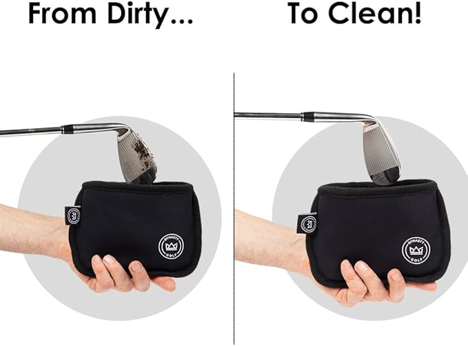 - Golf Club Cleaner - Just insert your golf club into the pouch, scrub a bit and it is clean and ready to go. It is a complete golf club cleaning kit and golf cart ball cleaner.