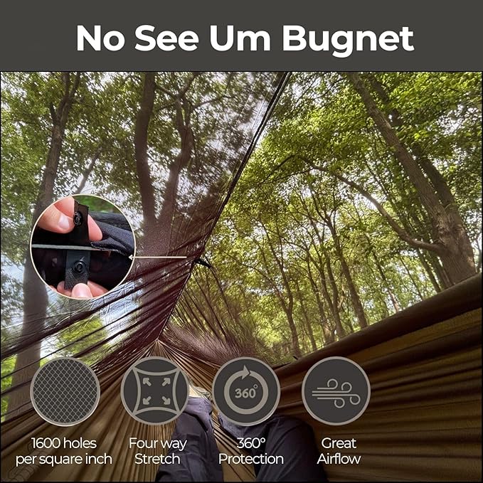 - 360-Degree Insect Protection: Enjoy reliable insect protection with this hammock bugnet. Crafted from high-quality 40D Nylon ripstop for the floor and ultra-fine no-see-um mesh with 1600 holes per square inch, ensuring maximum durability and exceptional protection against even the smallest insects.