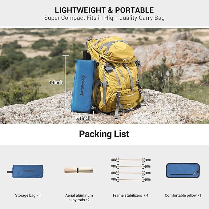 - Compact & Easy to Transport: The cot features a removable frame and segmented design, reducing its folded size to just 14 x 5.1 x 5.1 inches. This makes it super easy to carry and store in your backpack or vehicle, perfect for backpacking, hiking, and other outdoor travels.