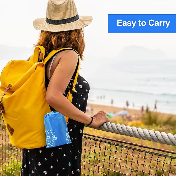 - Easy to Fold and Carry: Weighing less than 2 pounds, this lightweight and compact beach mat folds easily into the included storage bag, fitting conveniently into cars or backpacks without taking up much space.