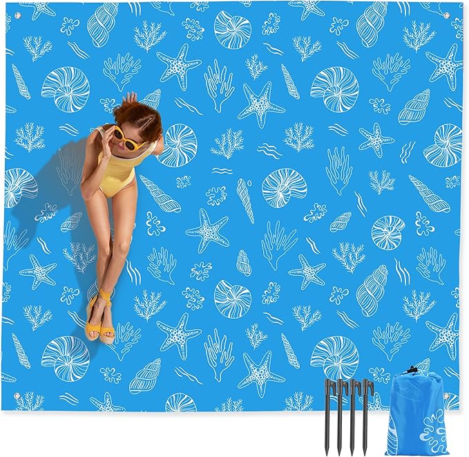 - Waterproof and Sandproof Beach Blanket: Crafted from high quality polyester fiber, this beach blanket comes with 4 corner loops and durable ABS anchors stakes, offering waterproof, windproof, and sandproof capabilities for enjoying sunny beach days.