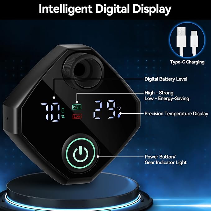 - Personalized Display Screen - The portable pump’s LED display screen shows real-time water temperature and power status. The water temperature range is 32-140°F (0-60°C). If the water temperature is below 35℃, the indicator is blue; between 35-45℃, the indicator is green; above 45℃, the indicator is red. This feature prevents scalding in high temperatures and ensures safe usage.