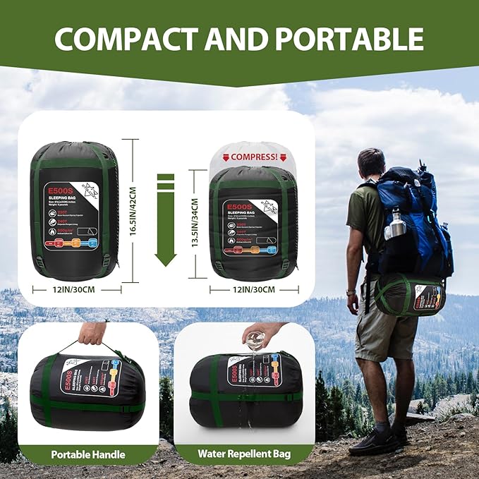- EASY PACKING AND CLEANING - This xl sleeping bag package size is 16.5 x 12 in, weight 6 lbs. Comes with a compression sack, Machine washable, perfect for hiking, backpacking, car camping, and more