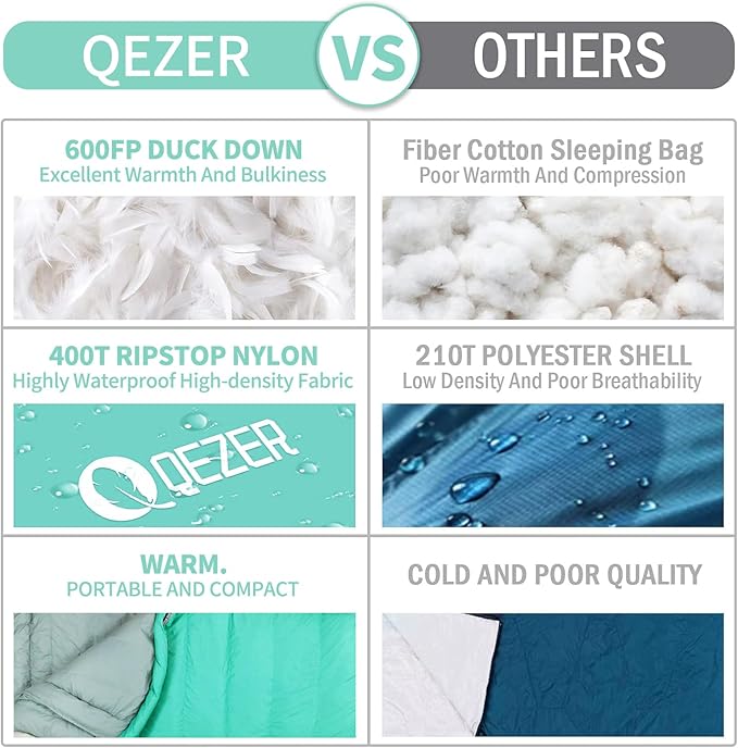 - 【 𝐒𝐀𝐓𝐈𝐒𝐅𝐀𝐂𝐓𝐈𝐎𝐍 𝐆𝐔𝐀𝐑𝐀𝐍𝐓𝐄𝐄 】QEZER always provides our customers with the best sleeping bag products and services. If you have any product questions, please contact us, we will respond sincerely and do our best to keep you satisfied.