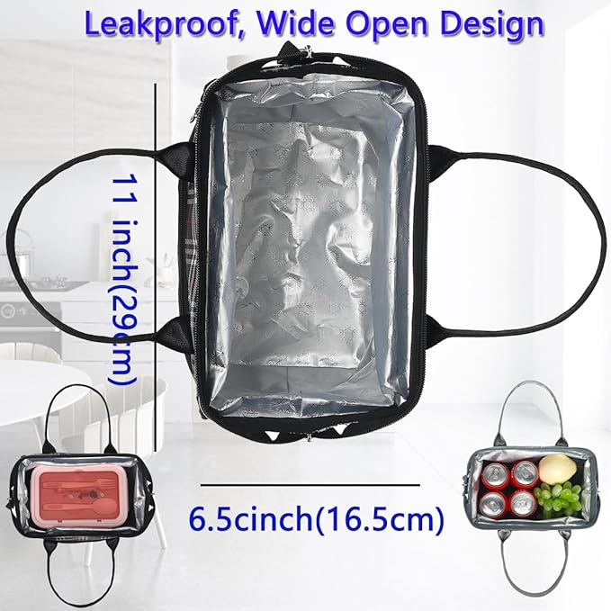- ✿ Wide-Open Design & Large Size: Our women bag can be opened up to 11"L x 6.5"W by dual zipper closure, you can put into or take out of your lunch or other kinds of stuff horizontally, avoid spilling soup or liquid in the bag. The dimension is:11” L×6.5” W×11” H,it could give roomy storage space you need to hold your favorite meals, delis, and lunch treat. You could fill the compartments or pockets with lunch boxes, food containers, condiments, fruit salad bowls and other essentials.