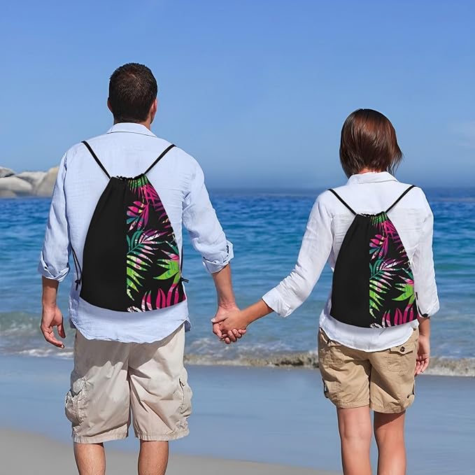 Palm Leaves Drawstring Bags Colorful Hawaiian Beach Backpack Personalized Rainbow Floral Sport Gym Sack Summer Theme String Bag Yoga Bag for Men Women