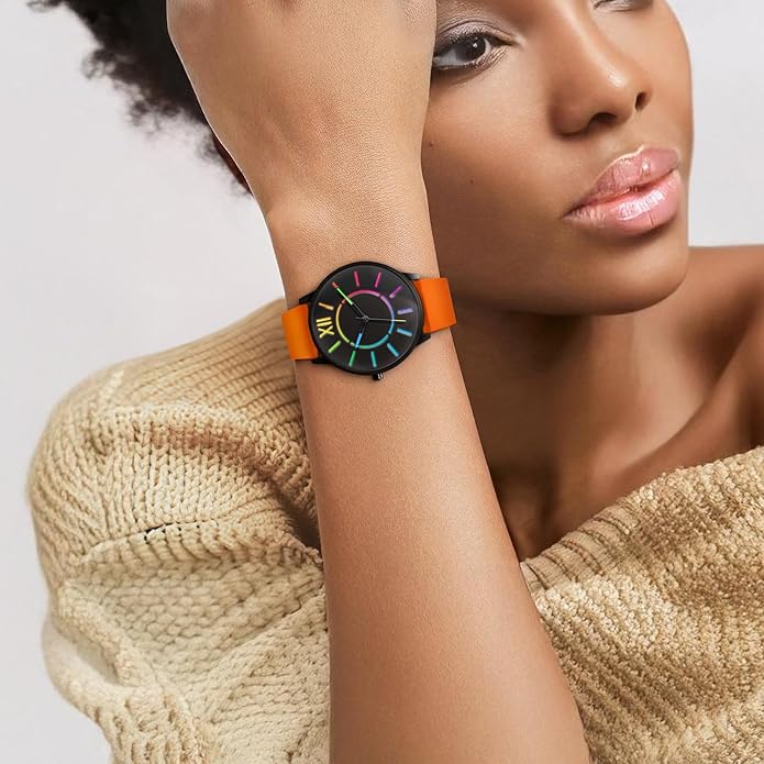 • Easy-to-Read: The black dial with rainbow index ensures that you can quickly and effortlessly read the time at a glance, making this watch both fashionable and functional.