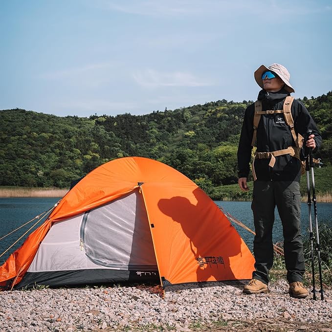 - 【Durable Quality】 The tent is designed for mountain hiking enthusiasts, rainproof, tear-proof, breathable, warm; wind-resistant and stable. Bracket through the tube design, strong wind resistance. The outer tent is tear-proof fabric, strong and durable. Tent stakes are aluminum 6 angle shape, more solid than ordinary ones.