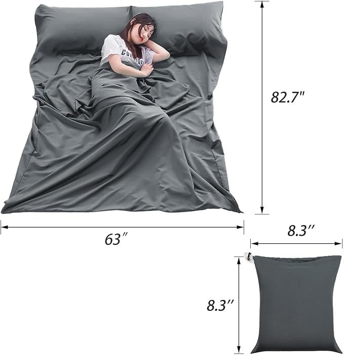 - LIGHTWEIGHT & PACKABLE: This travel sleep sheet line is 70.9 x 82.7inch(180 x 210cm) for double use. Only 31oz (875g). It can be folded into a practical 11.6”x 10.2”(29.5 x 26cm) pocket for saving space, very portable and lightweight. Easy to carry for travel use and save pace in your backpack.
