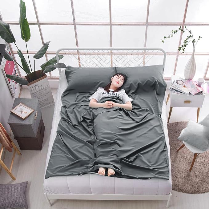- HUMANIZED DESIGN: The lightweight sleeping travel sheet has two buckles on the top of the sheet,opening on one or two side to make it easy for you to get into. It has an invisible zipper at the bottom for easy ventilation and free movement of your feet.You can open the bottom zipper if you feel hot sleeping in travel sheets.