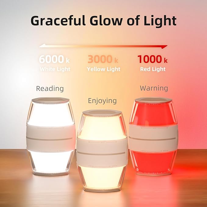 - 360° Knob Design: Easy adjustment of different light colors and light sensations even in dark situations, white light accompanies you to read the book, soft light accompanies you to enjoy the night,red light is used for emergency warning