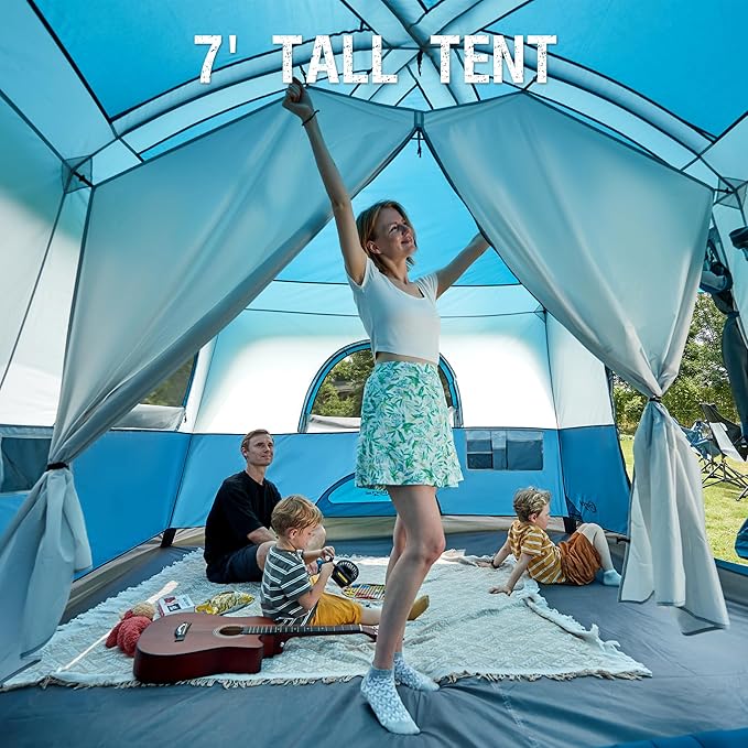 - Roomy for 10 Person: This camping tent is 14' x 10' x 84", spacious to fit 4 queen size air mattresses or 10 sleeping bags. The 84" center height is higher enough for standing up straight and comfortable movement inside the tent.