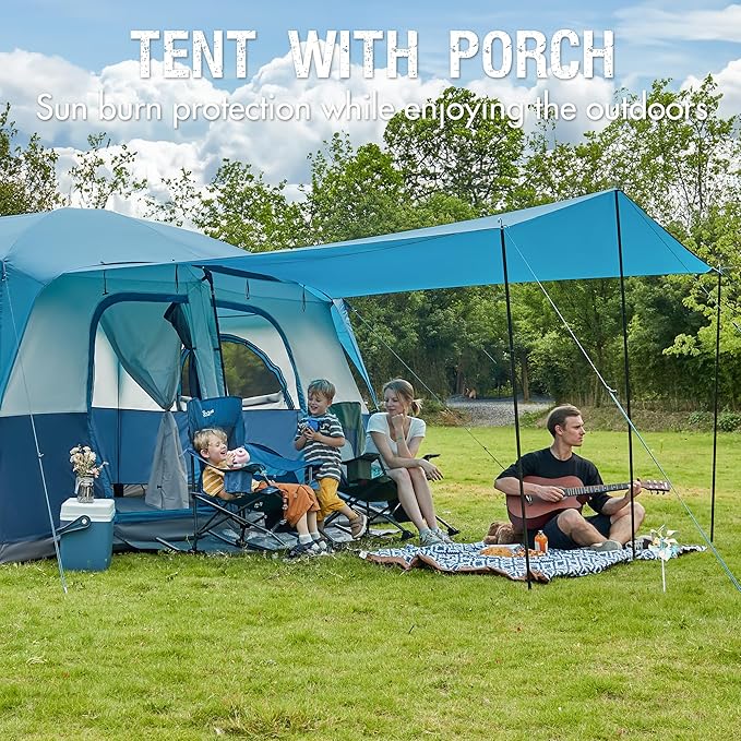 PORTAL 6 | 8 | 10 Person Family Camping Tent with Porch, Big Family Camping Tent with Tall Height, Good Ventilation, Water Resitant Large Tent for Outdoor Camping, Backyard