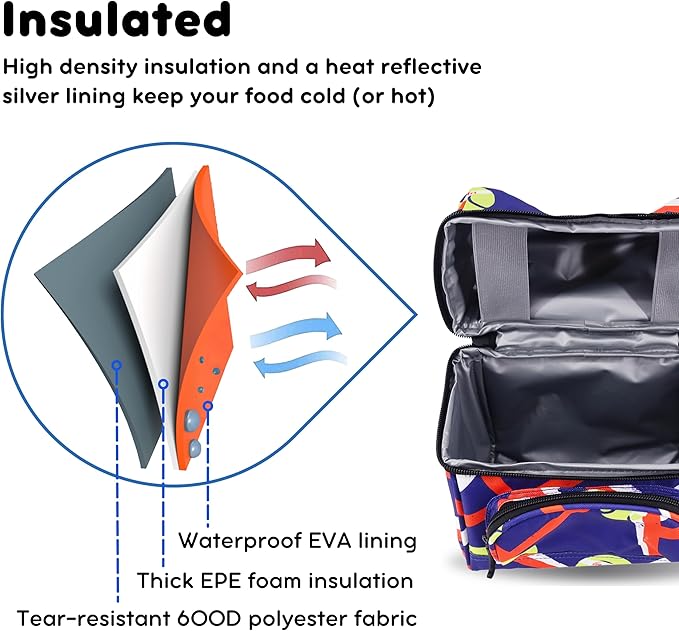 - Insulated — High density insulation and a heat reflective silver lining keep your food cold (or hot) in this thermal lunch bag