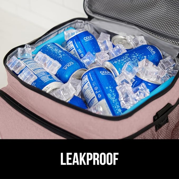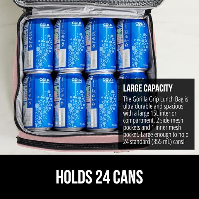 GORILLA GRIP Reusable Insulated Lunch Box Bag for Women Men,15L, Leakproof XL Soft Cooler Bags, Multiple Compartments, Mesh Pockets and Adjustable Strap, Food Tote Keeps Drinks Cold, 13x9, Pink