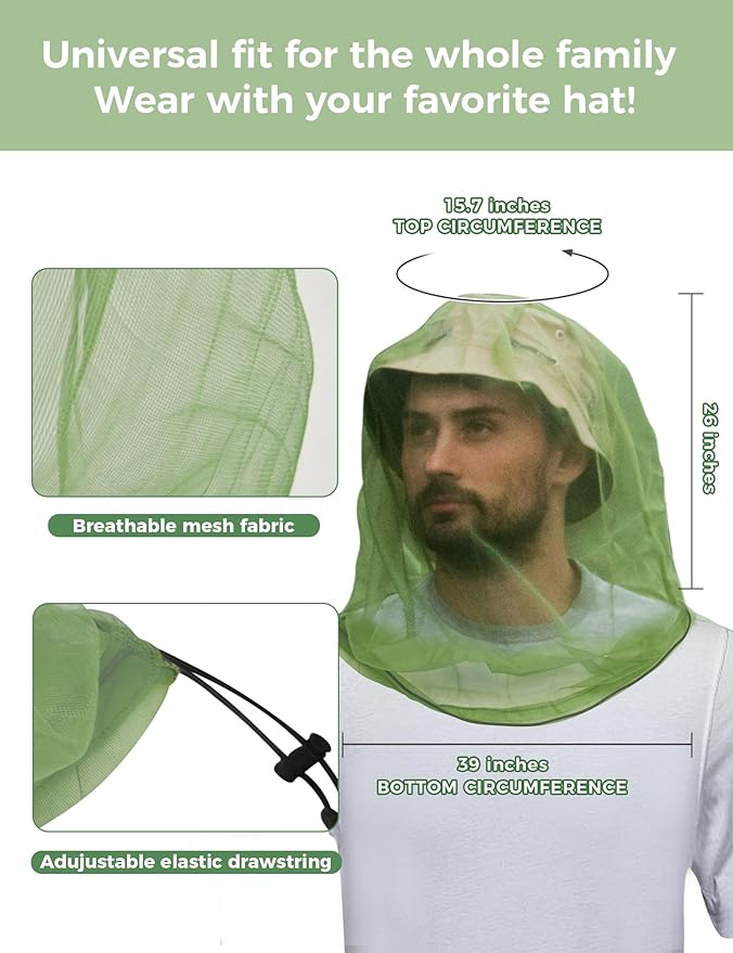 - OUTDOOR HEAD NET - Keep insects away from your eyes, nose, ears, face, and neck with natural methods.