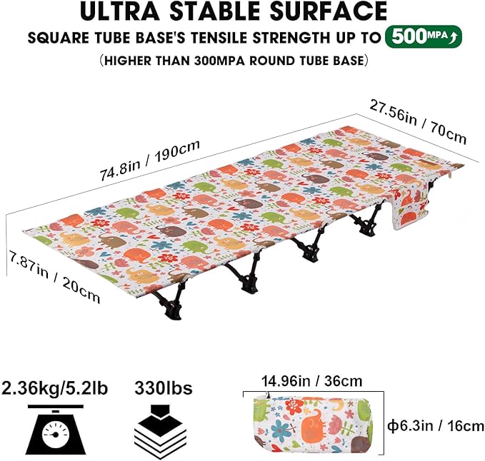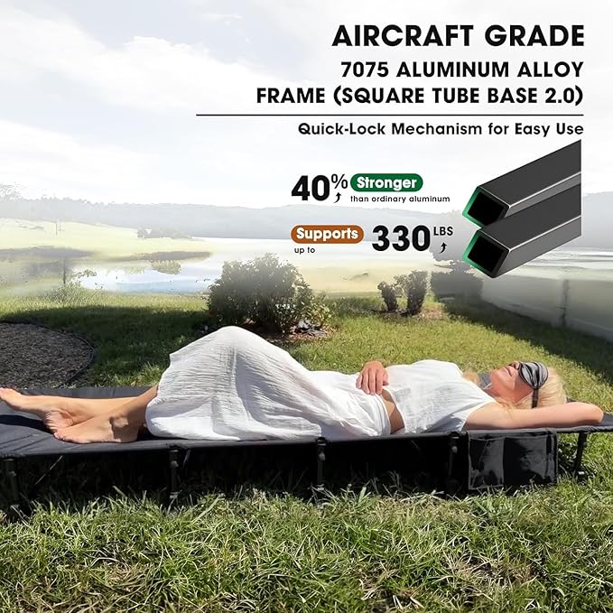• EASY-TO-INSTALL CAMPING COT AVOID DAMPNESS RELY ON ITS 6.7” HEIGHT AND WATERPROOF THINKEN NYLON CLOTH.