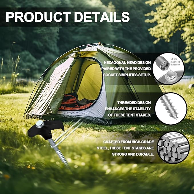 - Easy to install:Our tent stakes metal Setup faster,with the help of a cordless drill or impact driver, these easy-to-use stakes will secure your these stakes will provide you with a reliable anchor point making them a versatile and essential addition to your camping.