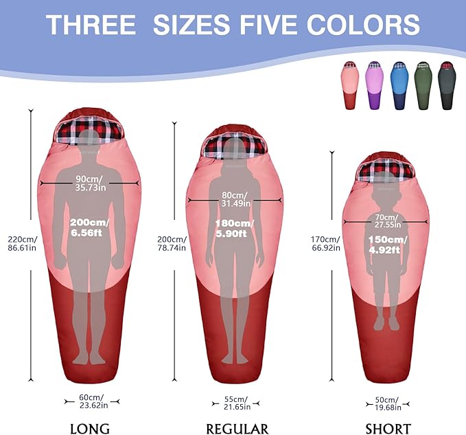 - Three sizes: Available in three sizes for adults, teenagers and children, suitable for users of different ages, convenient one-stop shopping. The sleeping bag comes with a compression bag for easy rolling and carrying. Whether you're camping, traveling, exploring the outdoors, or spending the night indoors, sleeping bags provide a comfortable sleeping environment.