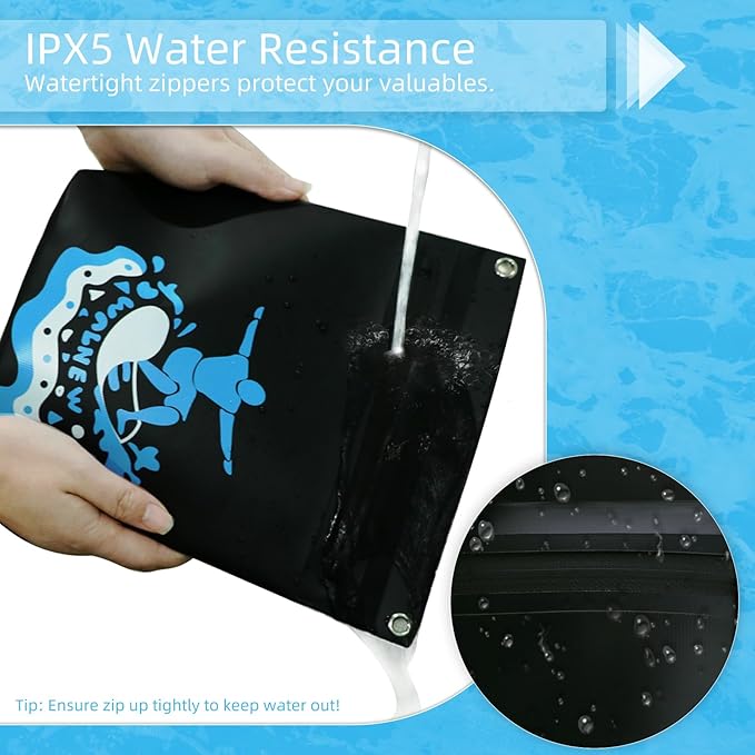 - WATERPROOF PROTECTION: Our waterproof bag features watertight zippers that effectively prevent water ingress. Crafted from premium waterproof fabrics, it offers IPX-5 rated protection, keeping your gear dry and safe (not suitable for underwater sports, ensure tight zipper closure before use).