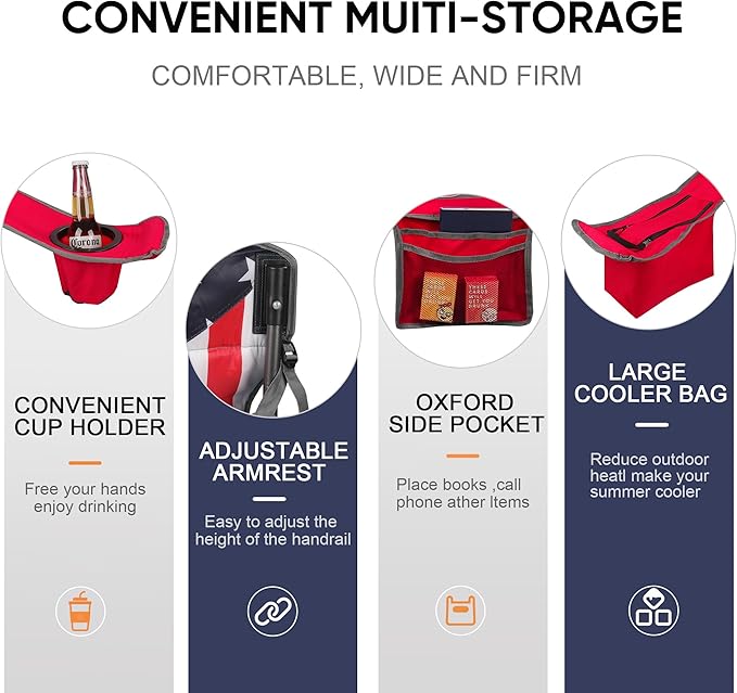 - Multifunctional Accessories Included: Enhance your outdoor experience with the included cup holder that keeps your beverages within reach and the cooler bag that helps maintain the perfect temperature for your snacks and drinks. These practical additions make your camping trips more convenient and enjoyable.