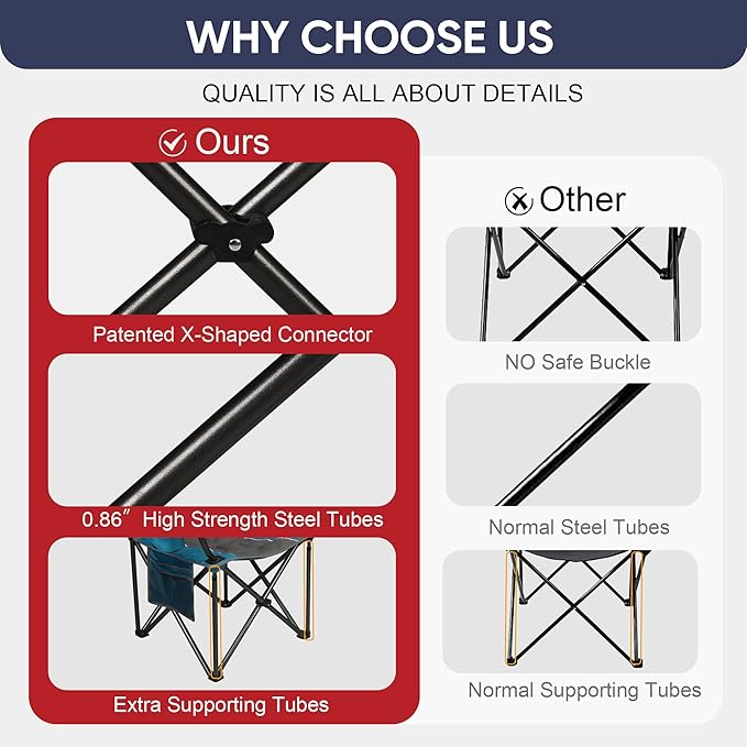 - The Perfect Companion for Any Outdoor Pursuit: Whether you're heading to the beach, hosting a backyard barbecue, enjoying a park picnic, or cheering on your favorite team, the Colorsoul Oversized Folding Camping Chair is your go-to seating solution. Its comfort, portability, and durability make it the perfect companion for any outdoor pursuit, providing the comfort of home no matter where you are.