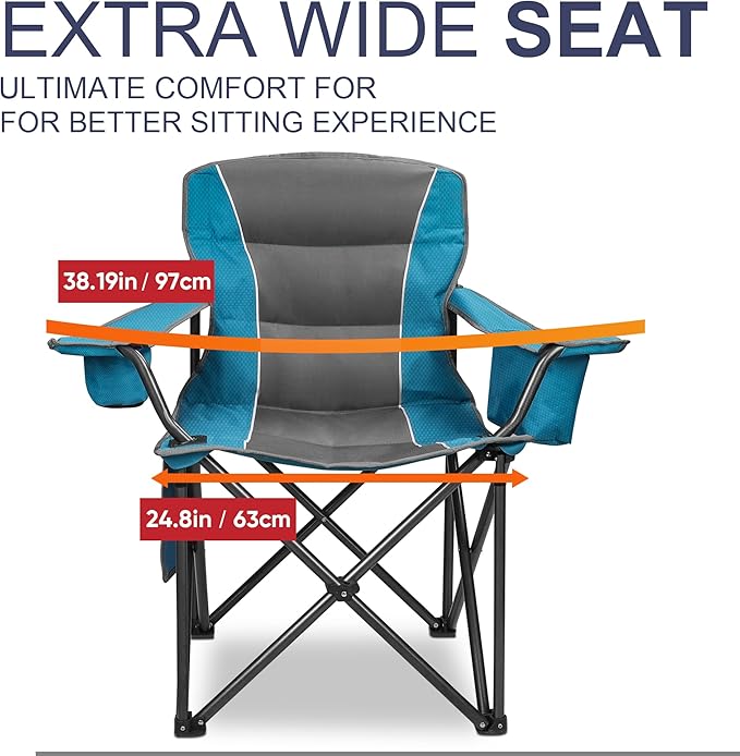 Colorsoul Oversized Folding Camping Chair, Outdoor Padded Camping Chair Support 300 LBS with Cup Holder and Cooler Bag, Portable Lawn Chair for Beach Picnic Sports, (Blue)