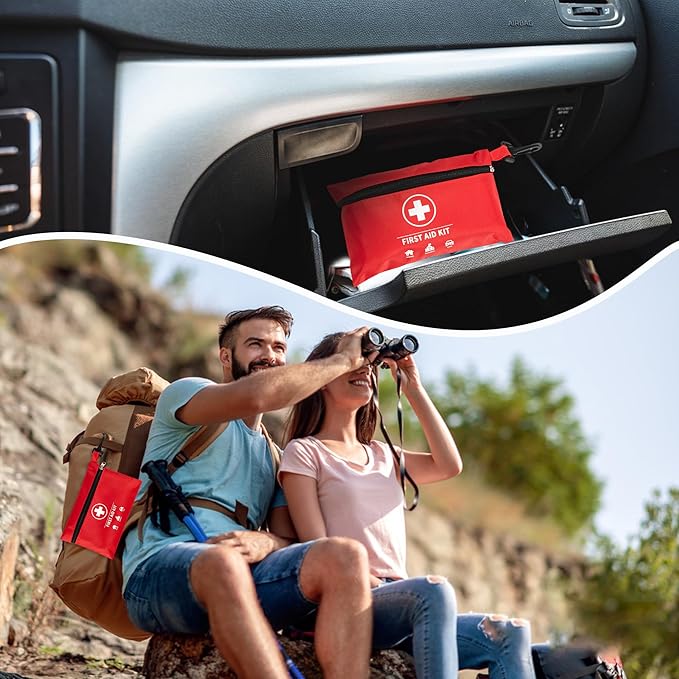 Mini First Aid Kit, Upgraded 140 Pieces First Aid Kit for Car, Essential Home Emergency Kit, Portable Compact Medical Kit for Kitchen, Office, Vehicle, Outdoor, Camping, Hiking