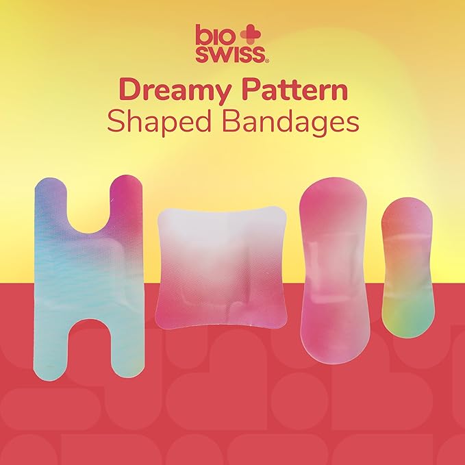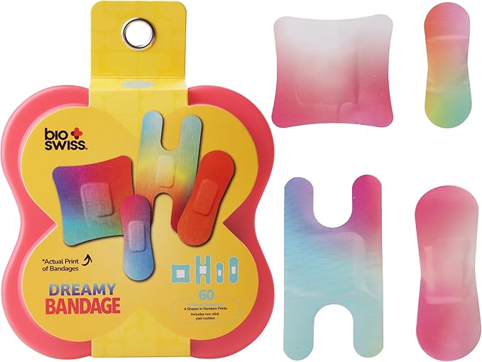 BioSwiss Bandages, Assorted Size Gradient Print Self Adhesive Bandage, Latex Free Sterile Wound Care, First Aid Kit Supplies for Kids and Adults, 60 Count