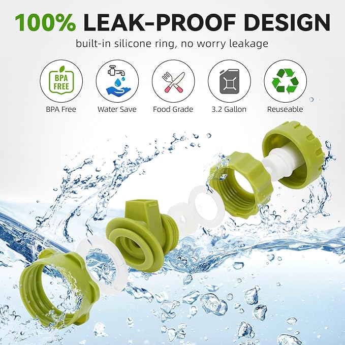 - 【Anti Leakage Design】The water jug with spout has two spiral top covers, both of which have detachable washers. There is a spiral valve that also includes a detachable gasket.The water containers for camping structure is very sturdy, with each component sealed with silicone, ensuring a safe seal to prevent any leakage or overflow.
