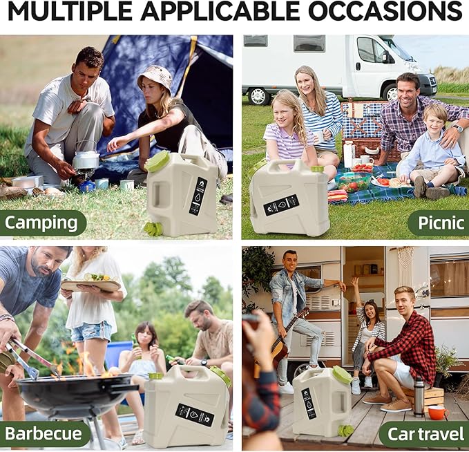 - 【Multifunction Use】The water storage can be used to store drinking water, beer, drinks for camping, camping, picnics, barbecue, and hiking. The water storage can be used to quickly and safely store all the water your family needs in the event of natural disaster. It provides you with a reliable source of water wherever you go for outdoor activities.