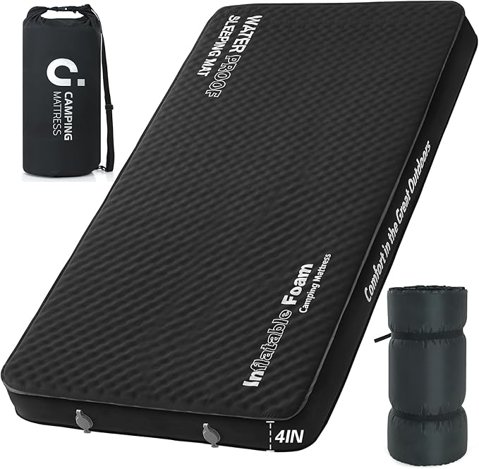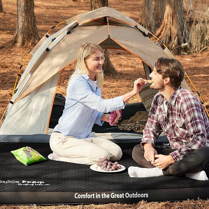 - Durable Camping Materials and Noise-Free Experience: With a soft, skin-friendly fabric, the mattress provides a stable sleeping surface with minimal noise, ensuring your movements won't disturb your or your partner's sleep. Unlike other mattress mat or sleeping pad that can emit annoying squeaks or friction sounds, the unique air and foam structure of this mattress will keep you comfortable and quiet throughout the night!