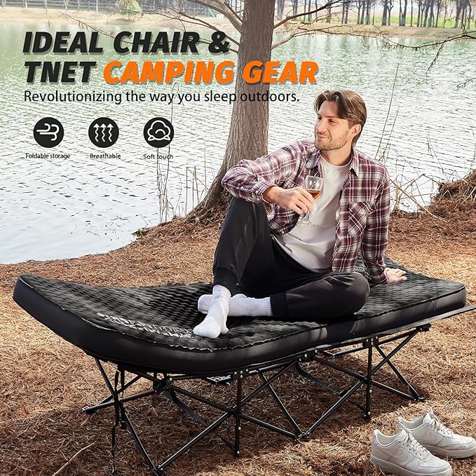 - Durable Camping Materials and Noise-Free Experience: With a soft, skin-friendly fabric, the mattress provides a stable sleeping surface with minimal noise, ensuring your movements won't disturb your or your partner's sleep. Unlike other mattress mat or sleeping pad that can emit annoying squeaks or friction sounds, the unique air and foam structure of this mattress will keep you comfortable and quiet throughout the night!