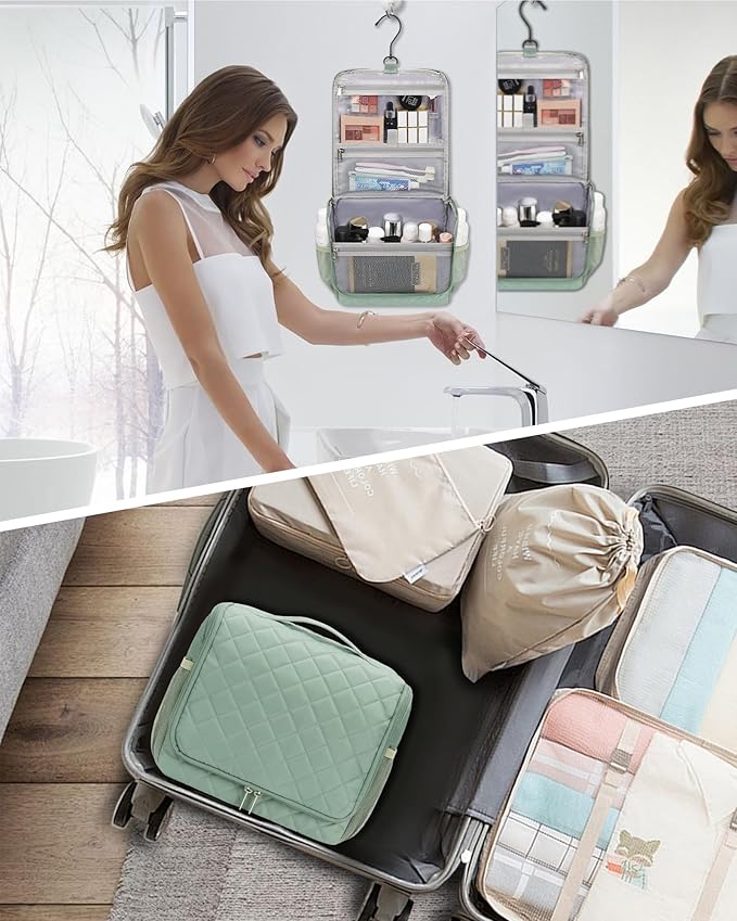 Relavel Toiletry Bag for Men, Hanging Travel Makeup Bag for Women, Waterproof Large Cosmetic Organizer Multiple Compartments for Accessories, Full Sized Toiletries Dopp Kit Shaving Bag (Green, Medium)