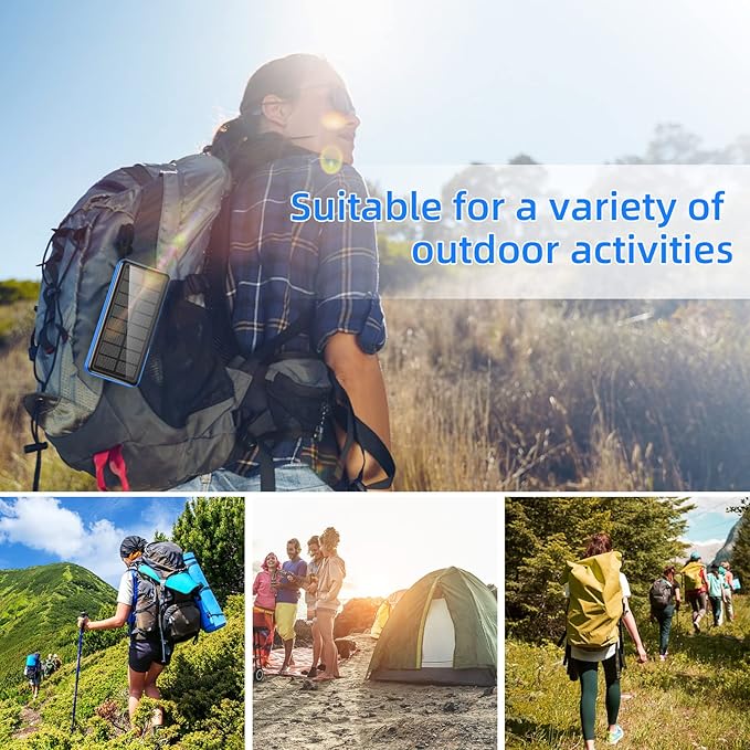 - 【5 Output Ports & 4 Input Ports】The Plug In Portable Charger Come with 5 Outputs(3 Built-in Output Cables,1 USB & 1 Type-C),with 4 Power Inputs(1 Built-in USB Cable,AC Plug,1 Type-C & Solar Charge).Type-C Supports Input and Output. You Can Charge Up To Five Devices At Time.