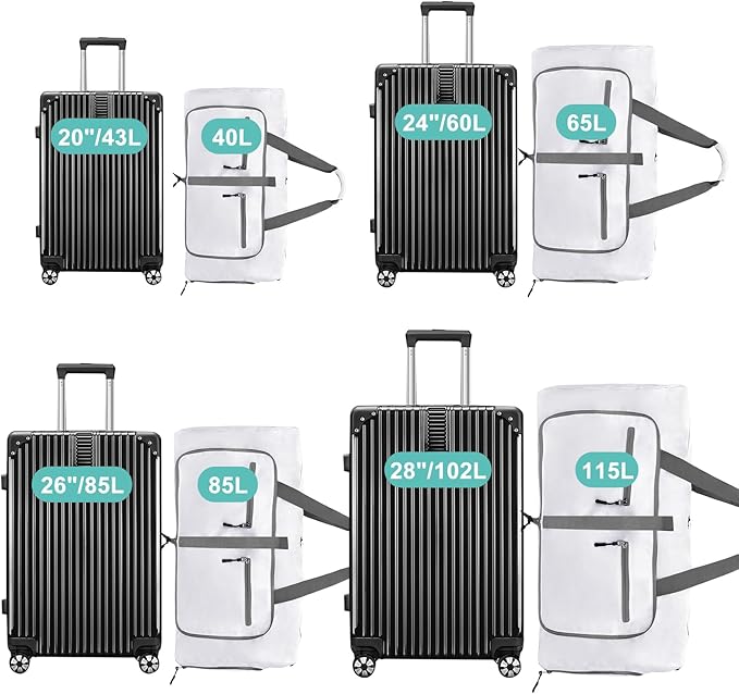 - Foldable and Spacious travel bag:The travel organizer bag can be folded into a really small size taking up so little space but opens up to have about 85L capacity of travel bags to use as a luggage bag in case that your suitcase swells. This travel duffel bag is designed to work best with bag packing cubes - to give you an organized lightweight travel experience.
