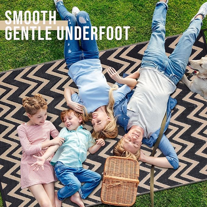 - Stain-resistant & Easy-care: Crafted from recycled plastic straws, our camping rugs are waterproof, fast-drying, and built to handle anything. They're also a sustainable choice for your outdoor adventures, made from repurposed materials! Say goodbye to stains! Mud, grass, and spills simply rinse away with water, leaving your rug looking fresh and new.