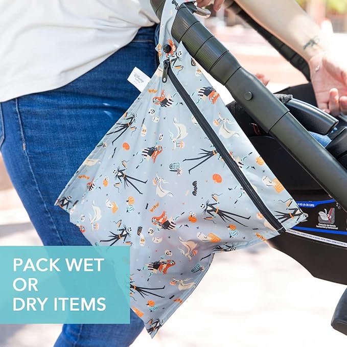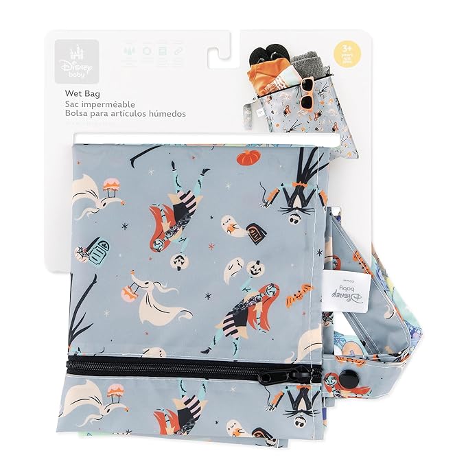 Bumkins Disney Waterproof Wet Bag for Baby, Travel, Swim Suit, Cloth Diapers, Pump Parts, Pool, Beach, Gym Clothes, Toiletry, Hook to Stroller, Daycare, Zip Reusable Wetdry, Nightmare Before Christmas