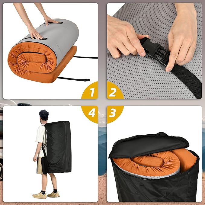 - Adventure-Ready Portability: From forest trails to living room floors, this sleeping pad goes wherever you do. With an Oxford carry bag, side pocket for essentials, and built-in buckle straps, it's easy grab on the go