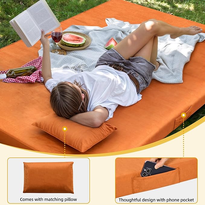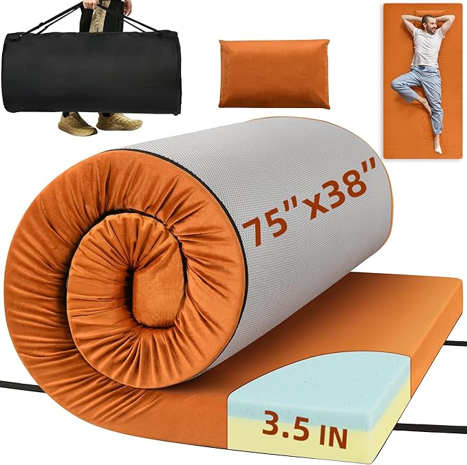 DWVO Memory Foam Camping Pad Futon Mattress Full, 3.5 INCH Thick Portable Floor Sleeping Mat with Travel Bag