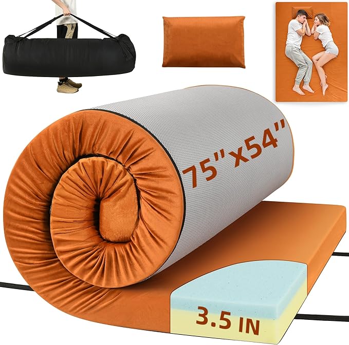 DWVO Memory Foam Camping Pad Futon Mattress Full, 3.5 INCH Thick Portable Floor Sleeping Mat with Travel Bag