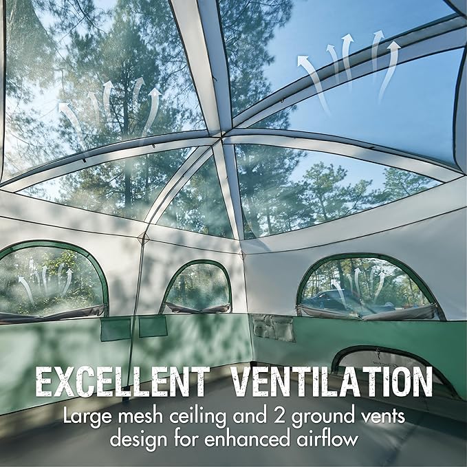 - SIMPLE 10-MINUTE SETUP: Designed for user-friendly assembly, this tent sets up in just 10 minutes with two people. A spacious carry bag makes packing up and storage effortless