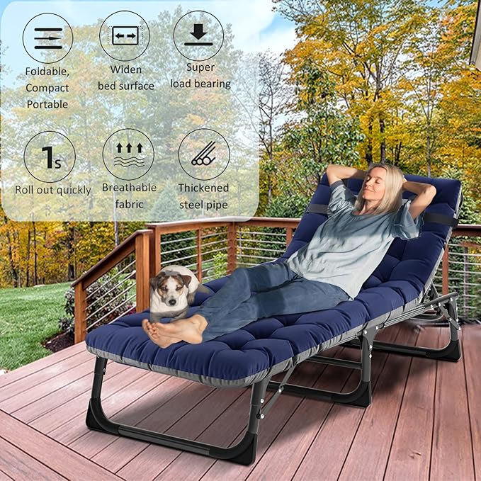 - Versatile Functionality: Can be used as a lounge cot for sunbathing; suitable for indoor and outdoor activities like camping, hiking, or fishing