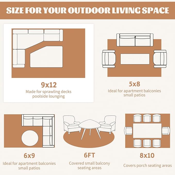 - Multi-Functional Use & Customer Service: This carpet which stands up to all seasons is a great option to create an outdoor oasis for patio, RV camping, porch, deck, playground, beach, balcony, picnic, gardens and garages.You and your family can walk, relax and play on the carpet without fear of allergies. If you got any problem with our product, please contact us immediately, we will offer you a satisfactory solution.