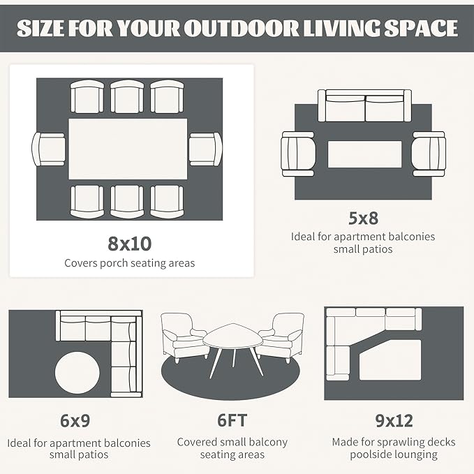 - Multi-Functional Use & Customer Service: This carpet which stands up to all seasons is a great option to create an outdoor oasis for patio, RV camping, porch, deck, playground, beach, balcony, picnic, gardens and garages.You and your family can walk, relax and play on the carpet without fear of allergies. If you got any problem with our product, please contact us immediately, we will offer you a satisfactory solution.