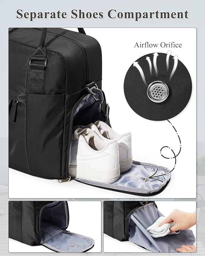 - Wide Application: The women's travel bag is made of waterproof material and also comes with comfortable shoulder straps or handles to suit different scenarios and personal preferences. You can choose to carry the bag by hand or adjust the length of the straps to sling it over your shoulder for the most comfortable carrying experience. This travel bag has a simple appearance. It can be used as a men's gym bag and travel tote bag, but also as a women's overnight bag and business travel bag.