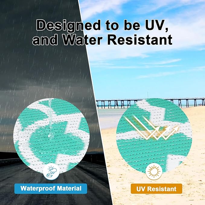 - Premium Material Outdoor Doormat: This reversible outdoor doormats are made from high quality recycled plastic straws and be woven tightly, durable enough, no fade, water resistant. It's soft and comfortable to walk on barefoot.Plus, the high-end UV coating and edge heat treatment technology prevent fading and sun damage without worrying about wear and tear.
