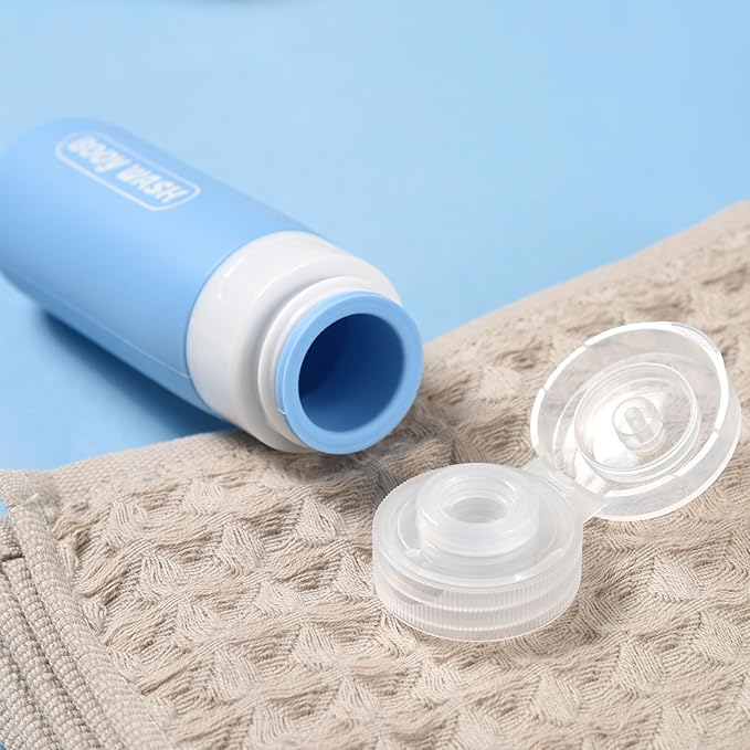 - Pre-labeled Travel Bottles with Printing: 3 pcs silicone travel bottles with clear labeling for "Shampoo" ,"Conditioner", and "Body Wash", which printed directly on the bottle's surface, more clearly and explicitly marked, not easy to fall off, so you can more easily distinguish and view. Additionally, the other 3 plastic bottle is left blank, giving you the option to customize it to fit your specific needs with label stickers.