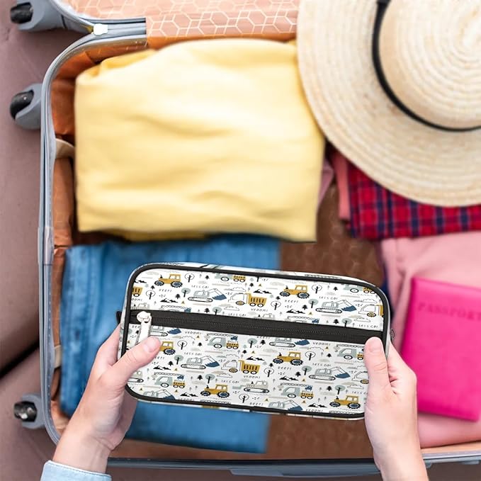 - 【Large Capacity Hanging Toiletry Bag】The excavator car makeup bag for boys mens has a large main zipper compartment for storing all other small items needed,such as cosmetics,razors,travel toiletries,etc;The outer layer has a zippered small pocket suitable for storing cash,cards,passports,phones,snacks,and other small items that can be conveniently carried around.