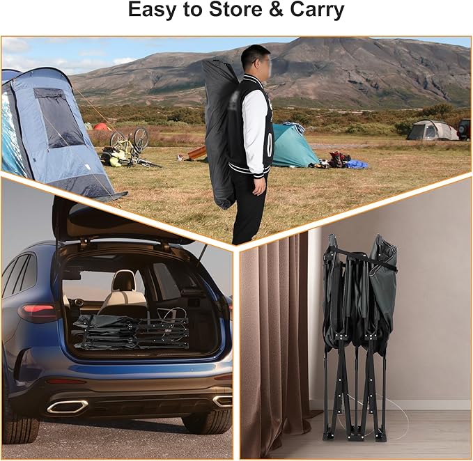 - Foldable & Portable: No eatra tools are needed to install the camping cot. You can open it within 10 seconds. Easy to fold when not in use. You can fold it in the equipped storage bag, then place it anywhere without occupying sapce.